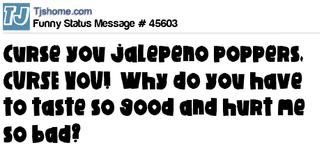 X Curse you jalepeno poppers, CURSE YOU! Why do you have to taste so good and hurt me so bad?
