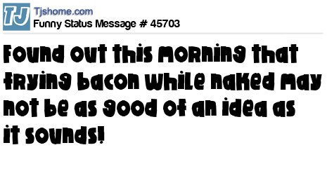 X found out this morning that frying bacon while naked may not be as good of an idea as it sounds!