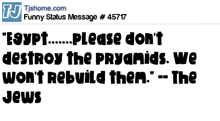 - # 45430 Dear Egypt, please don't destroy the pyramids. We won't rebuild. - The Jews.