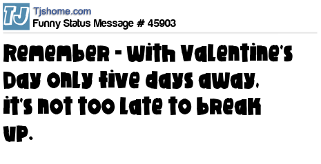 - # 123713 FYI - Valentines Day is only 4 days away... It's not too late to break up.