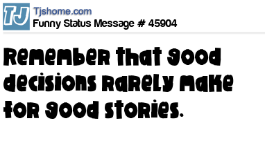 - # 43133 Bad decisions always make for really good stories........and I always seem to have a LOT of really good stories....