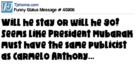 X says Will he stay or will he go? Seems like President Mubarak must have the same publicist as Carmelo Anthony...