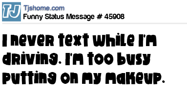 X is I never text while I'm driving. I'm too busy putting on my makeup.