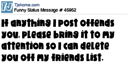 X If anything I post offends you, please bring it to my attention so I can delete you off my friends list.