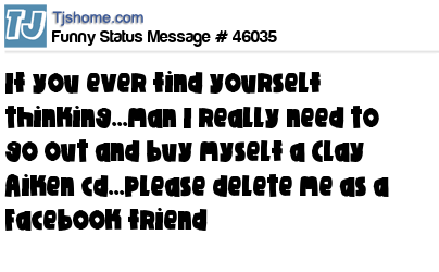 X says If you ever find yourself thinking...man I really need to go out and buy myself a Clay Aiken cd...please delete me as a Facebook friend