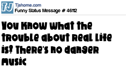 - # 63664 In real life, I never know when danger is coming because the music doesn't change.
