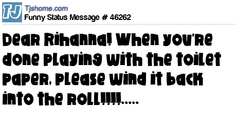 X is Dear Rihanna! When you're done playing with the toilet paper, please wind it back into the roll!!!!.....
