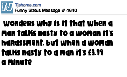 X says wonders why is it that when a man talks nasty to a woman it's harassment, but when a woman talks nasty to a man it's £3.99 a minute