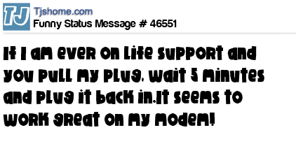 - # 147427 If I'm ever in the hospital on Life Support, don't just pull the plug. Pull it and plug it back in. Basically, see if you can reboot me.