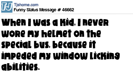 X says When I was a kid, I never wore my helmet on the special bus, because it impeded my window licking abilities.