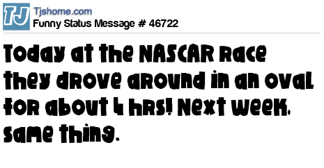 X Today at the NASCAR race they drove around in an oval for about 4 hrs! Next week, same thing.
