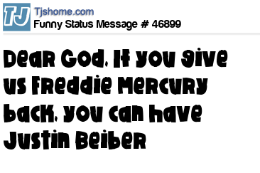 X  Dear God, If you give us Freddie Mercury back, you can have Justin Beiber