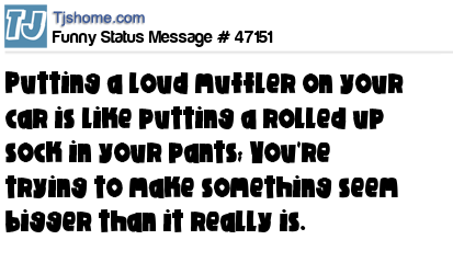 X Putting a loud muffler on your car is like putting a rolled up sock in your pants; You're trying to make something seem bigger than it really is.