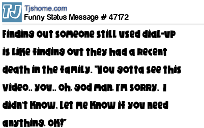 X Finding out someone still used dial-up is like finding out they had a recent death in the family. "You gotta see this video.. you.. oh, god man, I'm sorry. I didn't know. Let me know if you need anything, ok?"
