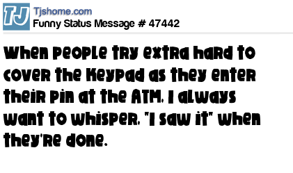 X says When people try extra hard to cover the keypad as they enter their pin at the ATM, I always want to whisper, "I saw it" when they're done.
