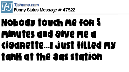 X is Nobody touch me for 5 minutes and give me a cigarette...I just filled my tank at the gas station
