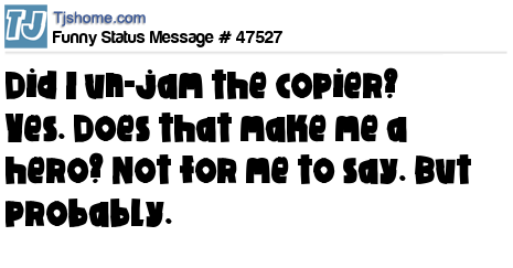 X says Did I un-jam the copier? Yes. Does that make me a hero? Not for me to say. But probably.