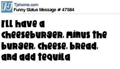 X I'll have a cheeseburger, minus the burger, cheese, bread, and add tequila
