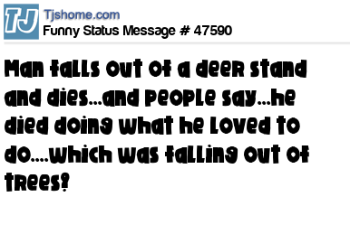 X is man falls out of a deer stand and dies...and people say...he died doing what he loved to do....which was falling out of trees?