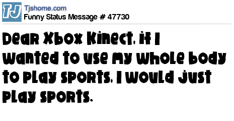 X Dear Xbox Kinect, if I wanted to use my whole body to play sports, I would just play sports.