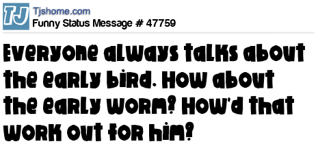 - # 140398 Sure the early bird gets the worm, but what does that say about the worm? He got up early too... Well, the point is,,, Ummm.
