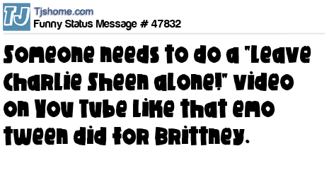 X says Someone needs to do a "Leave Charlie Sheen alone!" video on You Tube like that emo tween did for Brittney.