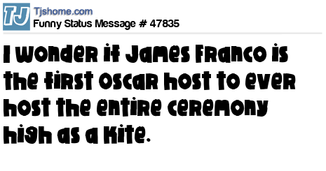 X says I wonder if James Franco is the first Oscar host to ever host the entire ceremony high as a kite.