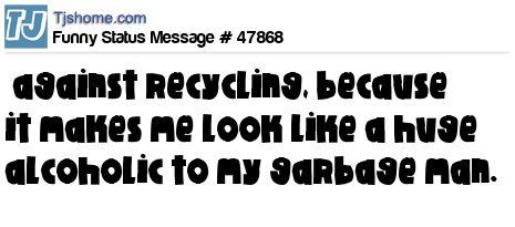 - # 102317 I'm against recycling because it makes me appear to be a huge alcoholic to my garbage man.