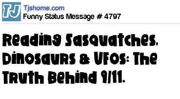 X is reading Sasquatches, Dinosaurs & UFOs: The Truth Behind 9/11.