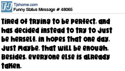 X is tired of trying to be perfect, and has decided instead to try to just be herself, in hopes that one day, just maybe, that will be enough.  Besides, everyone else is already taken.