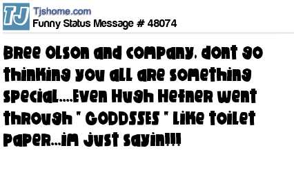 X is Bree Olson and company, dont go thinking you all are something special....Even Hugh Hefner went through " GODDSSES " like toilet paper...im just sayin!!!