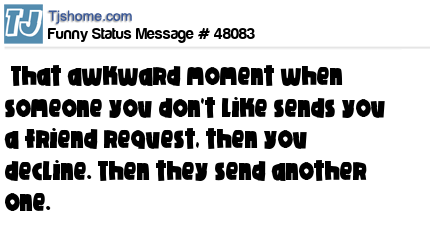 X is That awkward moment when someone you don't like sends you a friend request, then you decline. Then they send another one.