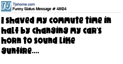 - # 47554 I cut my commute time in half by changing my car's horn to sound like gunfire.