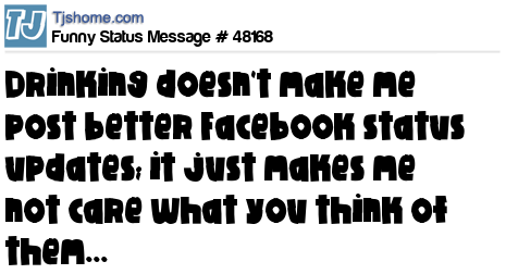 - # 48164 Drinking doesn't make me post better Facebook status updates; it just makes me not care what you think of them...
