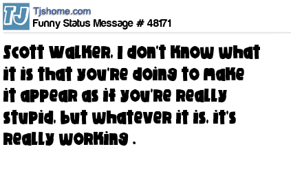 X says Scott Walker, I don't know what it is that you're doing to make it appear as if you're really stupid, but whatever it is, it's really working .