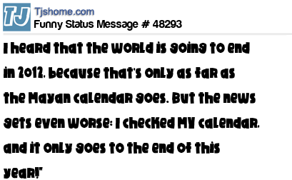- # 5814 The Mayan calendar says the world is going to end in 2012. That's why I refer to my Ziggy calendar instead.