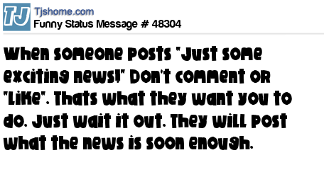 X says when someone posts "Just some exciting news!" Don't comment or "like". Thats what they want you to do. Just wait it out. They will post what the news is soon enough.