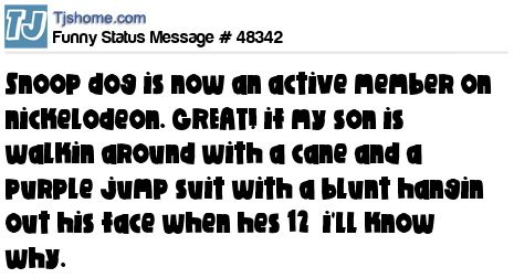 X is snoop dog is now an active member on nickelodeon. GREAT! if my son is walkin around with a cane and a purple jump suit with a blunt hangin out his face when hes 12 i'll know why.