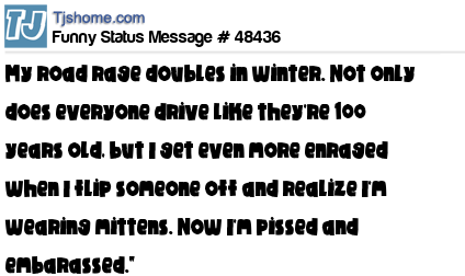 - # 78648 I just hate it when I flip someone off and then realize I'm still wearing my mittens.