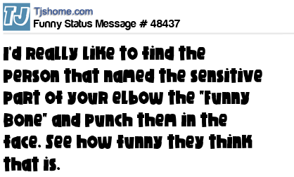 X says I'd really like to find the person that named the sensitive part of your elbow the "Funny Bone" and punch them in the face. See how funny they think that is.