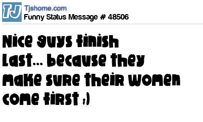- # 56734 Nice guys finish last, because they make sure their girl come first.