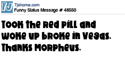 X took the red pill and woke up broke in Vegas. Thanks Morpheus.