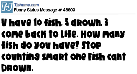 - # 19247 U have 10 fish, 5 drown, 3 come back to life. How many fish do you have? Stop counting smart one. Fish cant Drown
