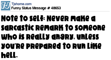 X says Note to self: Never make a sarcastic remark to someone who is really angry, unless you're prepared to run like hell.