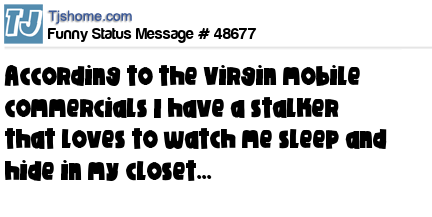 X is According to the Virgin mobile commercials I have a stalker that loves to watch me sleep and hide in my closet...