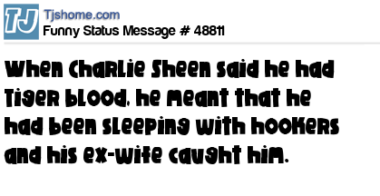 - # 178414 Charlie Sheen has all this "tiger" blood I guess its only fair Tiger has a little "Charlie" blood.