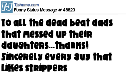 X says to all the dead beat dads that messed up their daughters...thanks! Sincerely every guy that likes strippers