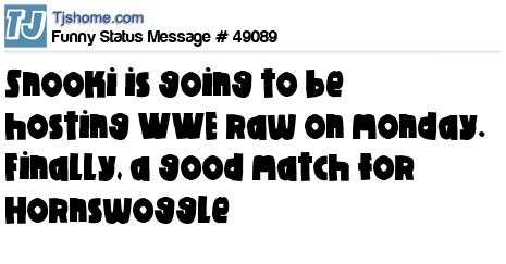 X Snooki is going to be hosting WWE raw on monday. Finally, a good match for Hornswoggle