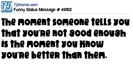 X The moment someone tells you that you're not good enough is the moment you know you're better than them.
