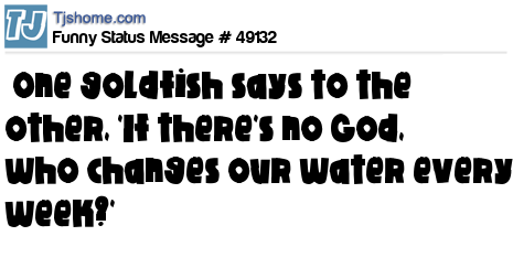 - # 90873 One goldfish says to the other, "If there's no God, who changes our water every week?"